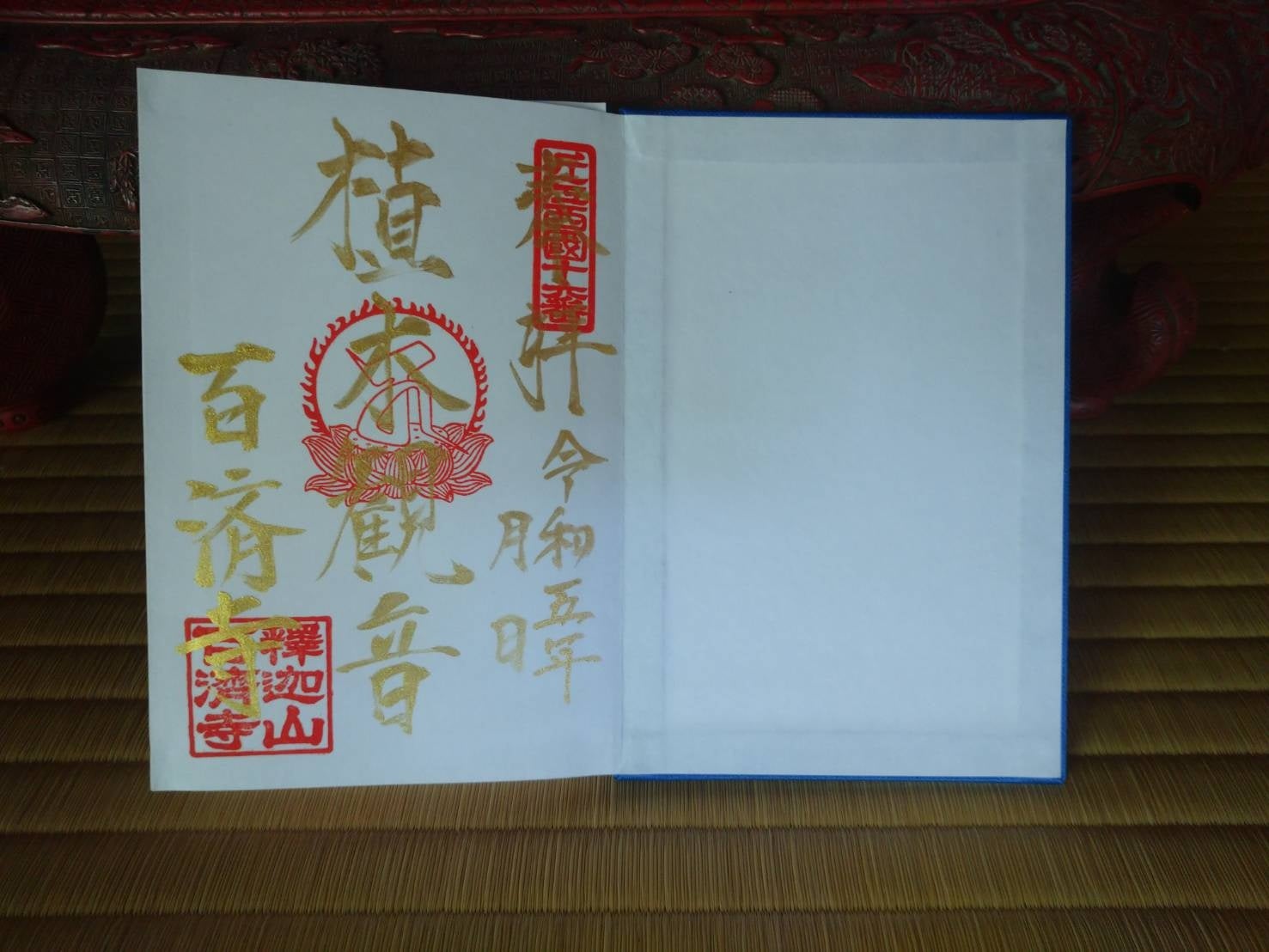 百済寺の御本尊は聖徳太子が根のついたままの木に直接彫られたため、植木観音としてあつい信仰を受けています。今回は特別に金字で記帳した御朱印帳を送ります。